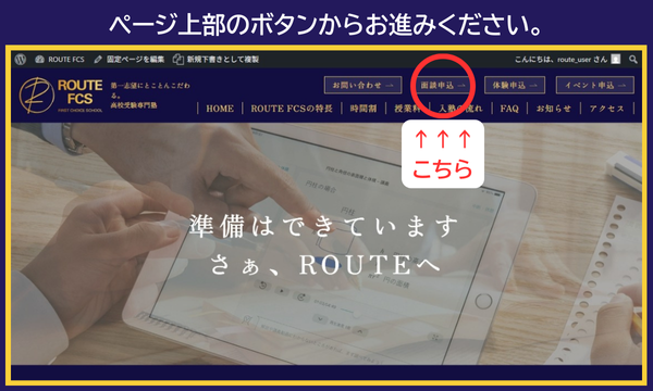 HP「面談申込」よりお申し込みください。教室よりメールにて日時を返信致します。