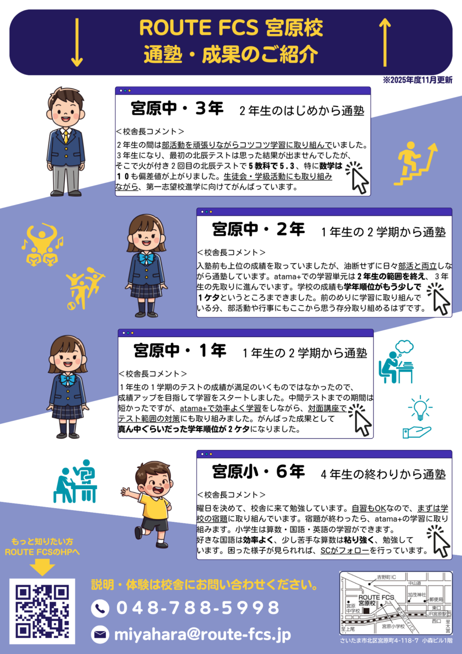 今年度も、ROUTE FCS宮原校で頑張ってくれている生徒たちがいます。