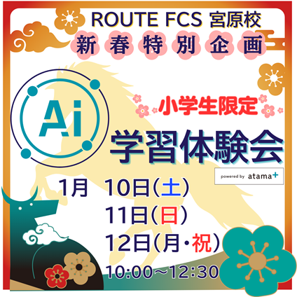 ROUTE FCS宮原校では、1月10日(土)・11日(日)・12(月・祝)の3日間、新春特別企画「AI 学習体験会」を開催します。