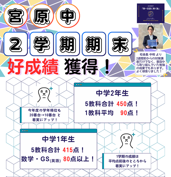 【宮原校】2学期 期末テスト 好成績のご紹介